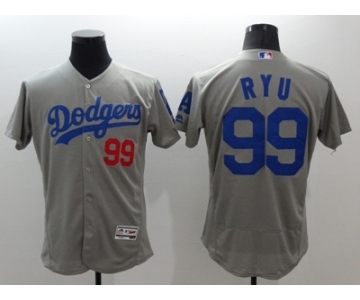 Men Los Angeles Dodgers #99 Hyun-Jin Ryu Majestic Gray Flexbase Authentic Collection Player Jersey