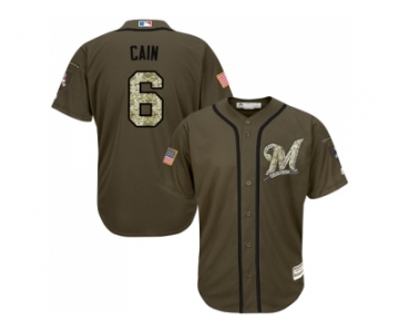Men Milwaukee Brewers #6 Lorenzo Cain Green Salute to Service Stitched MLB Jersey