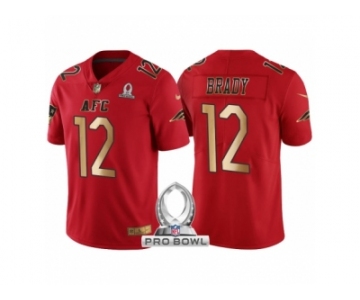 Men New England Patriots #12 Tom Brady AFC 2017 Pro Bowl Red Gold Limited Jersey