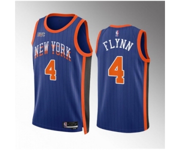 Men New Yok Knicks #4 Malachi Flynn Blue 2023 24 City Edition Stitched Basketball Jersey