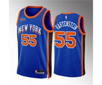 Men New Yok Knicks #55 Isaiah Hartenstein Blue 2023 24 City Edition Stitched Basketball Jersey