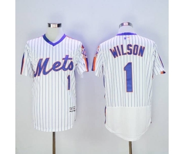 Men New York Mets #1 Mookie Wilson Majestic White Alternate Flexbase Authentic Collection Player Jersey