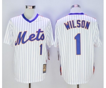 Men New York Mets #1 Mookie Wilson Majestic White Cool Base Cooperstown Collection Player Jersey