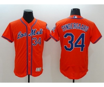 Men New York Mets #34 Noah Syndergaar Majestic Orange Flexbase Authentic Collection Player Jersey