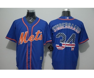 Men New York Mets #34 Noah Syndergaard Blue USA Flag Fashion Cool Base Jersey