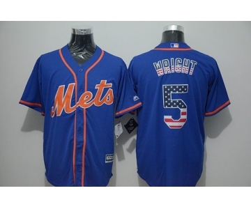Men New York Mets #5 David Wright Blue USA Flag Fashion Cool Base Jersey