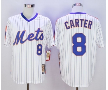 Men New York Mets #8 Gary Carter Majestic White Cool Base Cooperstown Collection Player Jersey