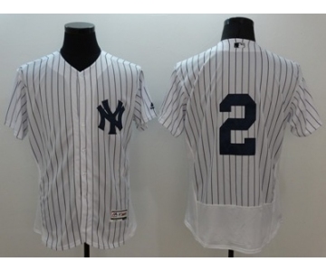 Men New York Yankees #2 Derek Jeter Majestic white stripe Flexbase Authentic Collection Player Jersey