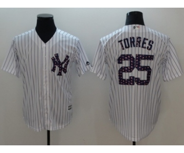 Men New York Yankees #25 Gleyber Torres White Strip New Cool Base 2018 Stars & Stripes Stitched MLB Jersey