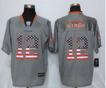 Men Nike Denver Broncos #12 Paxton Lynch USA Flag Fashion Gray Elite Jerseys