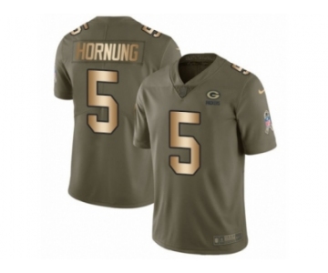 Men Nike Green Bay Packers #5 Paul Hornung Limited Olive Gold 2017 Salute to Service NFL Jersey