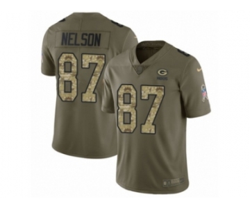 Men Nike Green Bay Packers #87 Jordy Nelson Limited Olive Camo 2017 Salute to Service NFL Jersey