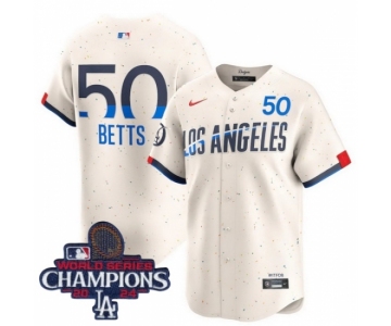 Men's Los Angeles Dodgers #50 Mookie Betts White 2024 World Series Champions Cool Base Stitched Baseball Jersey