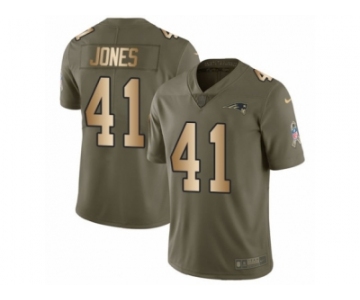 Men Nike New England Patriots #41 Cyrus Jones Limited Olive Gold 2017 Salute to Service NFL Jersey