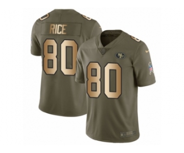 Men Nike San Francisco 49ers #80 Jerry Rice Limited Olive Gold 2017 Salute to Service NFL Jersey