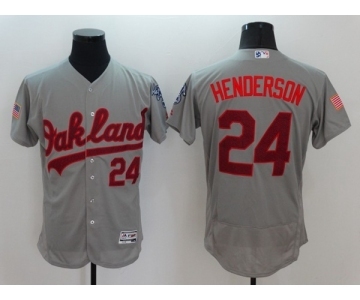 Men Oakland Athletics #24 Rickey Henderson Gray Stars & Stripes 2016 Independence Day Flex Base Jersey