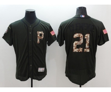 Men Pittsburgh Pirates #21 Roberto Clemente Majestic Green Salute to Service Flexbase Authentic Collection Player Jersey