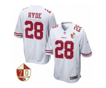 Your Position: Home>NIKE NFL Jerseys>Nike San Francisco 49ers>Game Jerseys>Men San Francisco 49ers #28 Carlos Hyde Nike White 70th Anniversary Patch Game Jersey