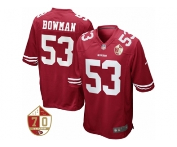 Men San Francisco 49ers #53 NaVorro Bowman Scarlet 70th Anniversary Patch Game Jersey