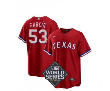 Men Texas Rangers #53 Adolis Garcia Red Cool Base 2023 World Series Splite Stitched Baseball Jersey