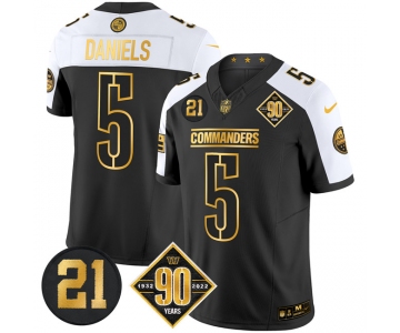 Men Washington Commanders 5 Jayden Daniels Black Gold F U S E 90th 26 Sean Taylor Patch Vapor Limited Stitched Football Jersey
