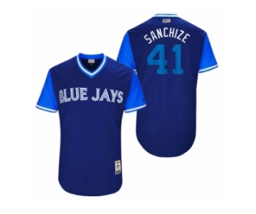 Your Position: Home>MLB Jerseys>Toronto Blue Jays>Men>Men's 2017 Little League World Series Blue Jays Aaron Sanchez #41 Sanchize Royal Jersey