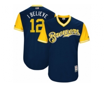Men's 2017 Little League World Series Brewers #12 Stephen Vogt I Believe Navy Jersey