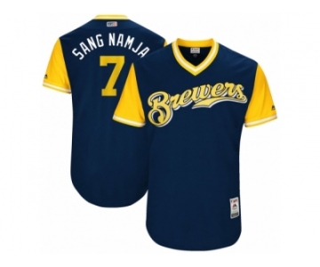 Men's 2017 Little League World Series Brewers Eric Thames #7 Sang Namja Navy Jersey