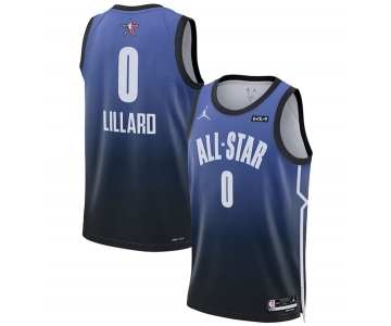 Men's 2023 All-Star #0 Damian Lillard Blue Game Swingman Stitched Basketball Jersey