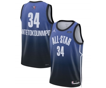Men's 2023 All-Star #34 Giannis Antetokounmpo Blue Game Swingman Stitched Basketball Jersey