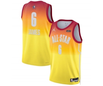 Men's 2023 All-Star #6 LeBron James Orange Game Swingman Stitched Basketball Jersey