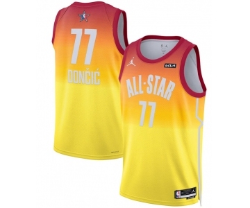 Men's 2023 All-Star #77 Luka Doncic Orange Game Swingman Stitched Basketball Jersey