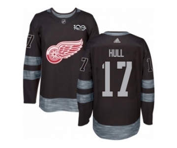 Men's Adidas Detroit Red Wings #17 Brett Hull Authentic Black 1917-2017 100th Anniversary NHL Jersey