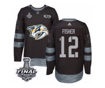Men's Adidas Nashville Predators #12 Mike Fisher Premier Black 1917-2017 100th Anniversary 2017 Stanley Cup Final NHL Jersey