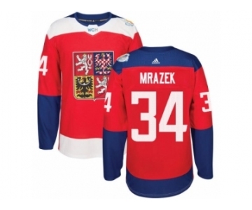 Men's Adidas Team Czech Republic #34 Petr Mrazek Premier Red Away 2016 World Cup of Hockey Jersey