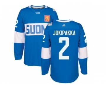 Men's Adidas Team Finland #2 Jyrki Jokipakka Premier Blue Away 2016 World Cup of Hockey Jersey