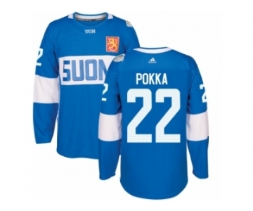 Men's Adidas Team Finland #22 Ville Pokka Premier Blue Away 2016 World Cup of Hockey Jersey