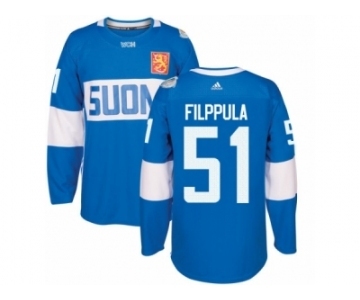 Men's Adidas Team Finland #51 Valtteri Filppula Premier Blue Away 2016 World Cup of Hockey Jersey