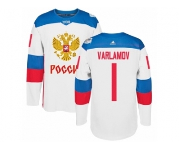 Men's Adidas Team Russia #1 Semyon Varlamov Premier White Home 2016 World Cup of Hockey Jersey
