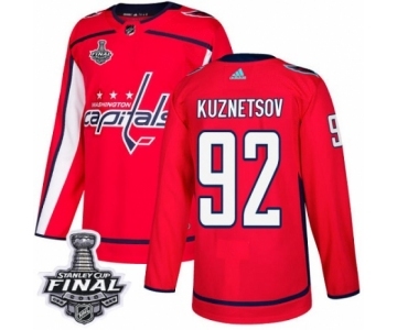 Men's Adidas Washington Capitals #92 Evgeny Kuznetsov Premier Red Home 2018 Stanley Cup Final NHL Jersey