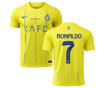 Your Position: Home>Soccer Shirt Kits>Club Soccer Men's Shirt Kit> Al Nassr>Men>Men's Al Nassr #7 Cristiano Ronaldo Yellow 2024 Home Soccer Jersey