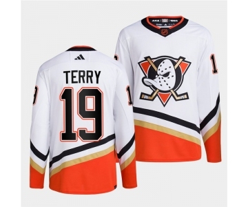 Men's Anaheim Ducks #19 Troy Terry White 2022-23 Reverse Retro Stitched Jersey