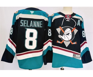 Men's Anaheim Ducks #8 Teemu Selanne Black Teal 2024-25 Stitched Jersey