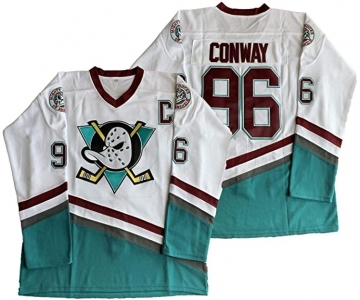 Men's Anaheim Ducks #96 Charlie Conway Mighty Ducks Movie 1995-96 White Green Ice Hockey Jerseys