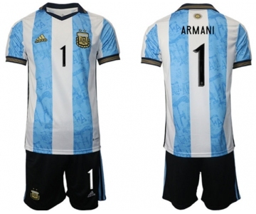 Men's Argentina #1 Armani White Blue Home Soccer Jersey Suit