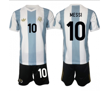 Your Position: Home>Soccer Shirt Kits>National Team Shirt Kit>Argentina>Men's Argentina #10 Lionel Messi White Blue 2024-25 50th Anniversary Home Soccer Jersey Suit