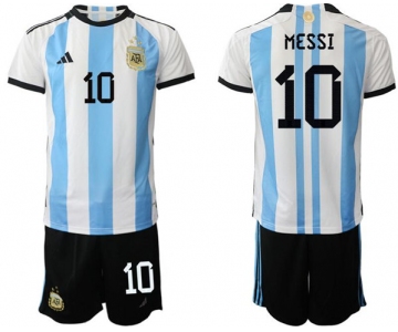Men's Argentina #10 Lionel Messi White Blue 2025 Home Soccer Jersey Suit