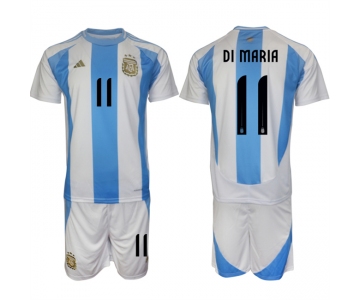Men's Argentina #11 Di maria White Blue 2024-25 Home Soccer Jersey Suit