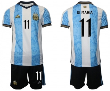 Men's Argentina #11 Di maria White Blue Home Soccer Jersey Suit