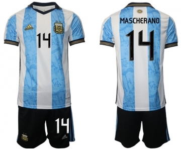 Men's Argentina #14 Mascherado White Blue Home Soccer Jersey Suit